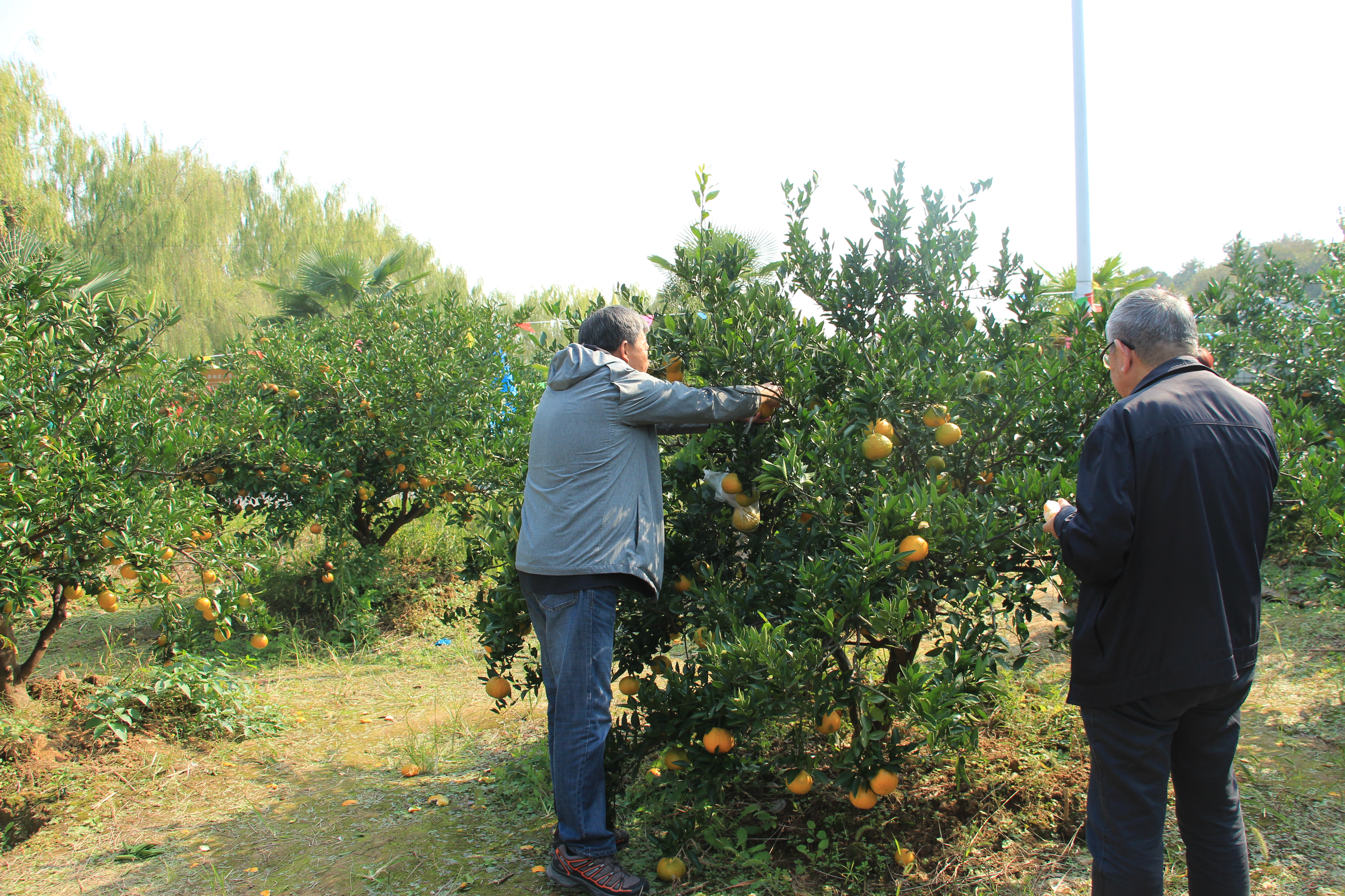 临近正午,一行人在小朱湾品尝了新鲜可口的农家特色小菜。下午,校领导陪同老教授们来到了农业观光园采摘橘子,在浓郁的重阳氛围中,体验闲适的农家生活。