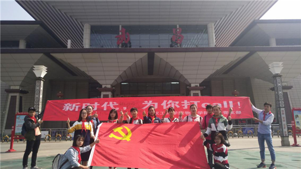早上8:30,物流学院学生党支部成员一行15人早早地在武昌火车站站前广场拉开了写有“新时代,为你打call”字样的横幅,引得周围的人投来好奇的目光。路过的人们纷纷在横幅上写下“中国加油!”等诸多对党和国家美好祝福的寄语。