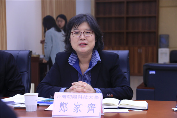随后,台湾朝阳科技大学郑家齐院长表示两校在办学模式与理念上非常相似。她介绍了台湾朝阳科技大学建校的基本情况,并提出与武汉工商学院合作的六项计划:一是学生短期交换研修;二是教师队伍和管理干部培训;三是学生交流营;四是学者互访;五是合作办学;六是科研项目合作。同时,她还指出了武汉工商学院学生到台湾朝阳科技大学交流学习的六大优势:一是两岸一家亲;二是校园国际化;三是应用型教学;四是科研实力强;五是选课弹性大;六是提升就业机会。她在发言结尾强调到,在全球化的竞争时代,知识经济和信息科技蓬勃发展,“创造力”和“行动力”已成为就业竞争的关键能力。与武汉工商学院一样,台湾朝阳科技大学也正在努力将“三创成果”与“三创人才”导引到产业之中。