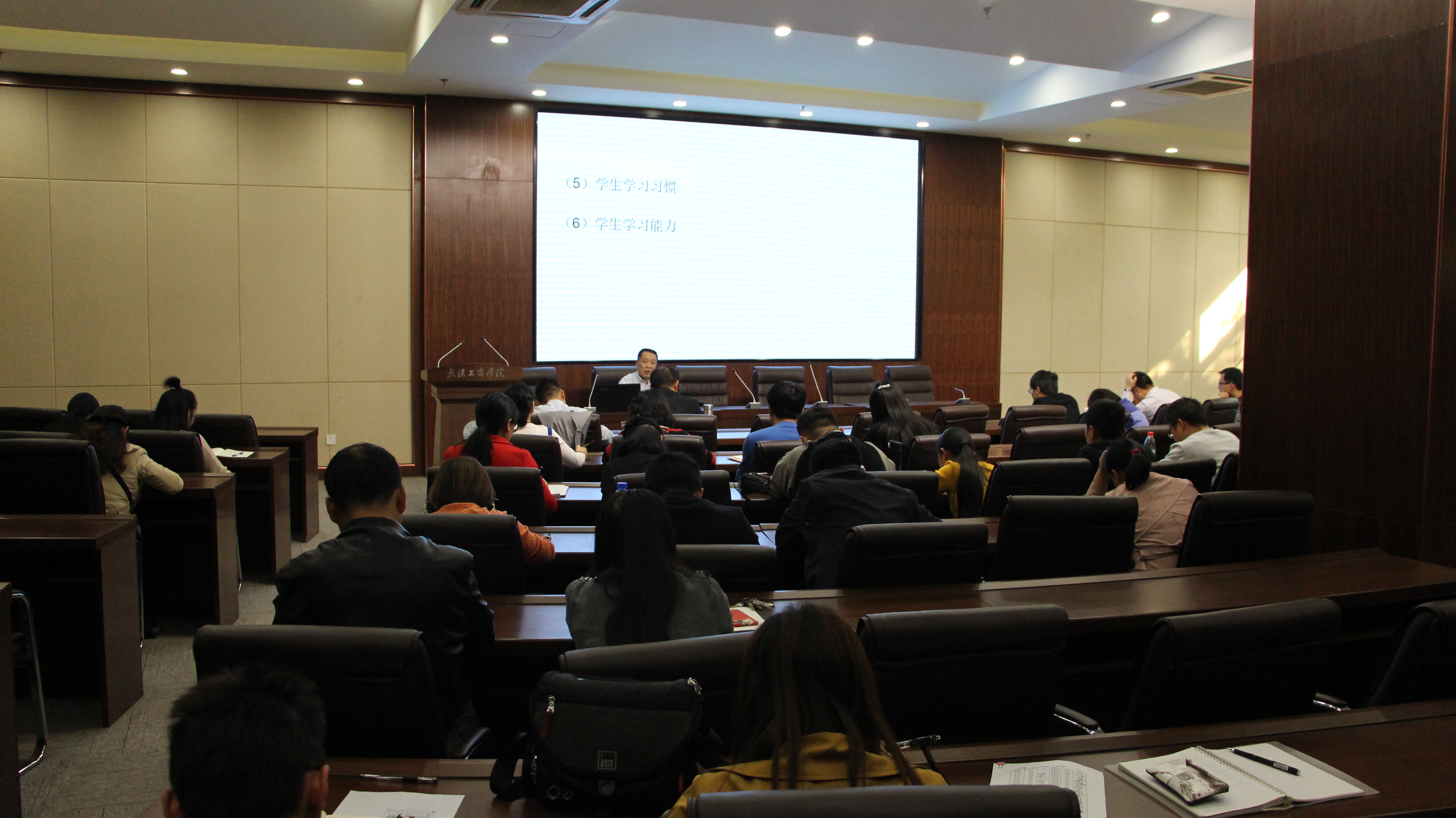 新闻中心讯(见习记者陈洁周春梅)为进一步提高教师的授课艺术,正确引导和教育学生,11月2日14:30,武汉工商学院特邀中南民族大学预科教育学院院长王奎正教授,在该校图书馆102会议室开展了一场以“大学老师教学方法漫谈”为主题的讲座。该校党委副书记孙松发,学工部部长陈义文,各学院党总支书记,招生就业部与学工部部分老师,以及该校全体辅导员听取了本次讲座。讲座由陈义文部长主持。