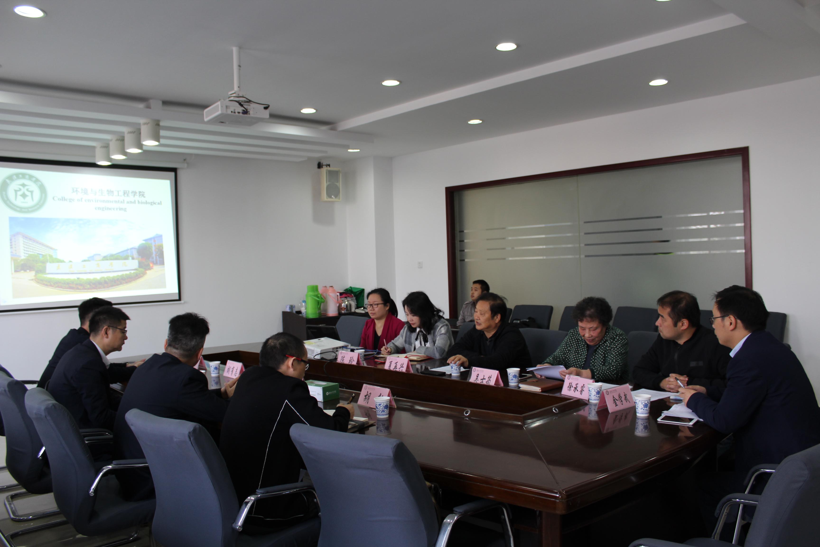 新闻中心讯(记者周帆)11月9日上午9:00,湖北省食品药品监督管理局处长高仍兵、中国食品安全报湖北记者站站长胡毅、湖北国食药安食品科技发展有限公司总经理胡有志、湖北中天职业培训中心总经理叶志伟等一行6人来到武汉工商学院交流考察。该校副校长夏再兴,教务部副部长金学武,环境与生物工程学院常务副院长吴士筠、党总支书记陈玲、副院长徐承睿和系主任吕凯波在该校实验楼二楼会议室接待了来宾,并就“筹建湖北省食品安全科普教育培训基地”进行交流洽谈,达成了初步的合作协议。