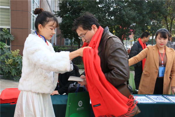 主办学校为参会专家送上红色祝福 摄影吕志新