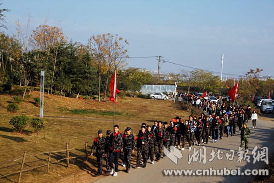 湖北日报网讯(通讯员田爽、摄影王尧)“通过徒步20公里的方式重温一二·九北平学生抗日救国游行运动这段革命历史,让我深刻感受到了先辈们身上的坚韧毅力。”武汉工商学院新闻专业大一学生许锌说道。12月9日上午8点,武汉工商学院200多名学子顶着寒风从该校正门口出发,怀着重温历史,立志弘扬先辈爱国精神的决心,开始了长达20公里的“纪念建军90周年暨‘一二·九运动’82周年徒步行军”活动。