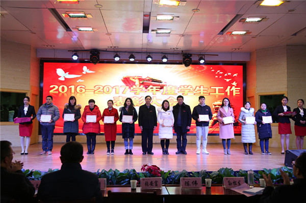 紧接着,颁奖环节上,左宗文宣读了《关于表彰2016-2017学年“优秀辅导员”的决定》,授予殷娟等10名同志“优秀辅导员”称号。