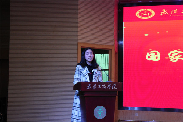 经外学院2014级王琬同学作为“国家奖学金”获得者代表发言 摄影黄凡霁