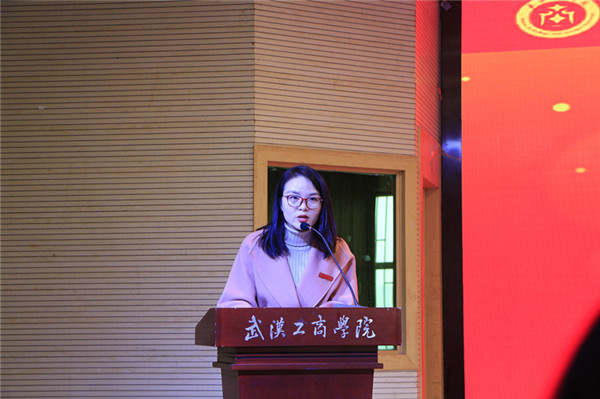 文法学院2015级杨智慧同学作为“优秀学生”代表发言。“非常感谢悉心教导我们的老师,是他们用敬业负责的工作态度在学习和生活方面给了我们全面、优质的教育。对于我来说,大学既是一所充满机遇和挑战的殿堂,也是一片拓展思维、塑造自我的天地。回顾过去两年的学习生活,我很庆幸当初自己能来到武工商,也很庆幸入校以后没有虚度光阴,能通过自己的坚持和不懈努力,获得了一等奖学金和校级三好学生称号。对于我的学习心得,我总结了‘三不要’:不要将就,高质高效地完成每一项课程作业;不要敷衍,认真对待生活和学习;不要放弃,相信滴水石穿的力量。在今后的日子里,我会继续保持谦虚谨慎的心态,怀揣梦想,更加脚踏实地学习、努力。”