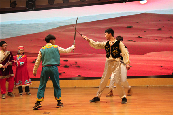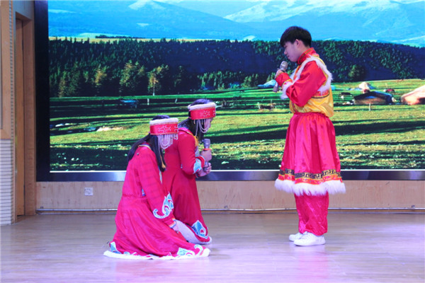 该校民族教育学院2017级全体学生以班级为单位自编自导自演,带来了一场独具民族特色的话剧演出。