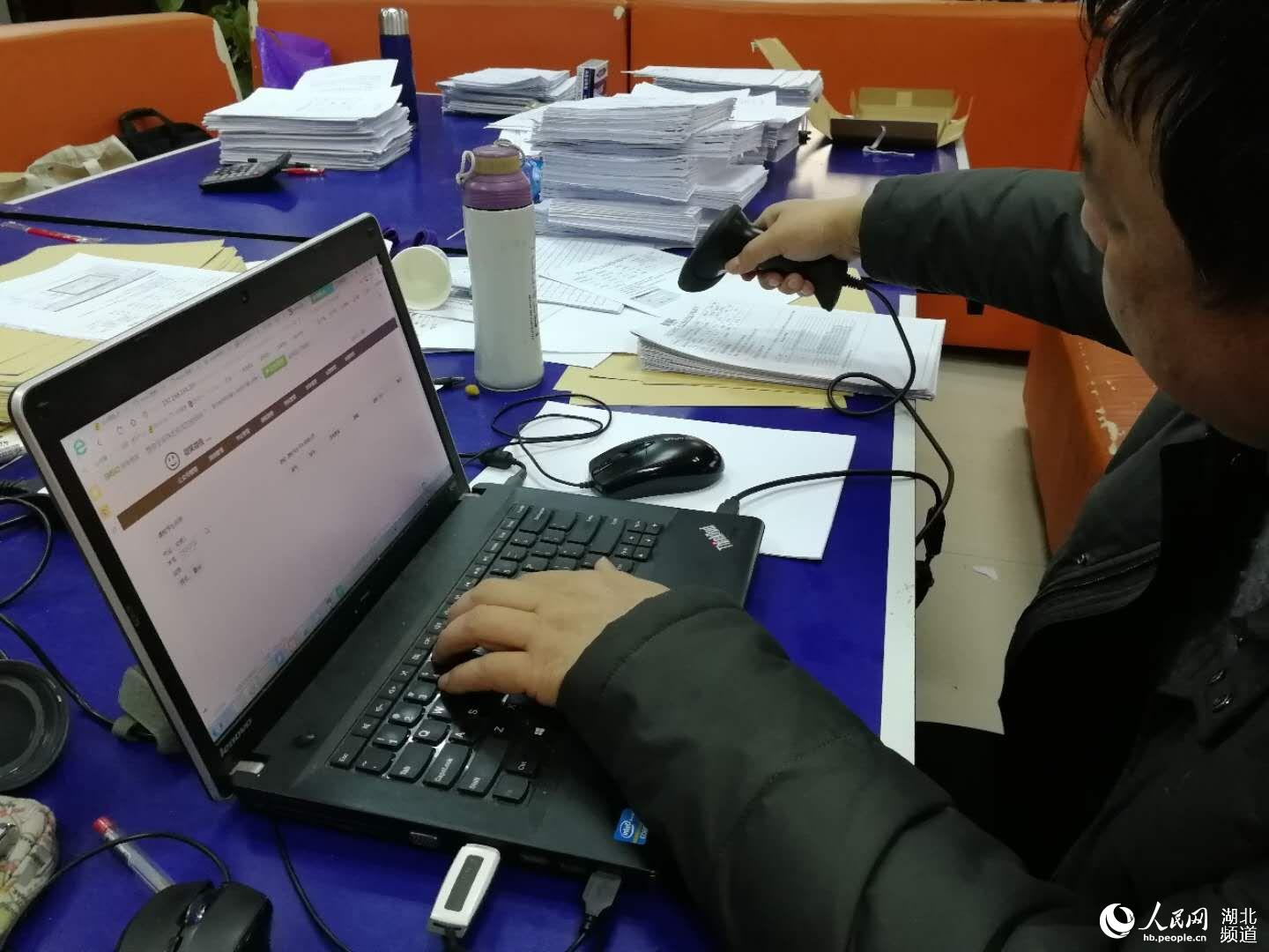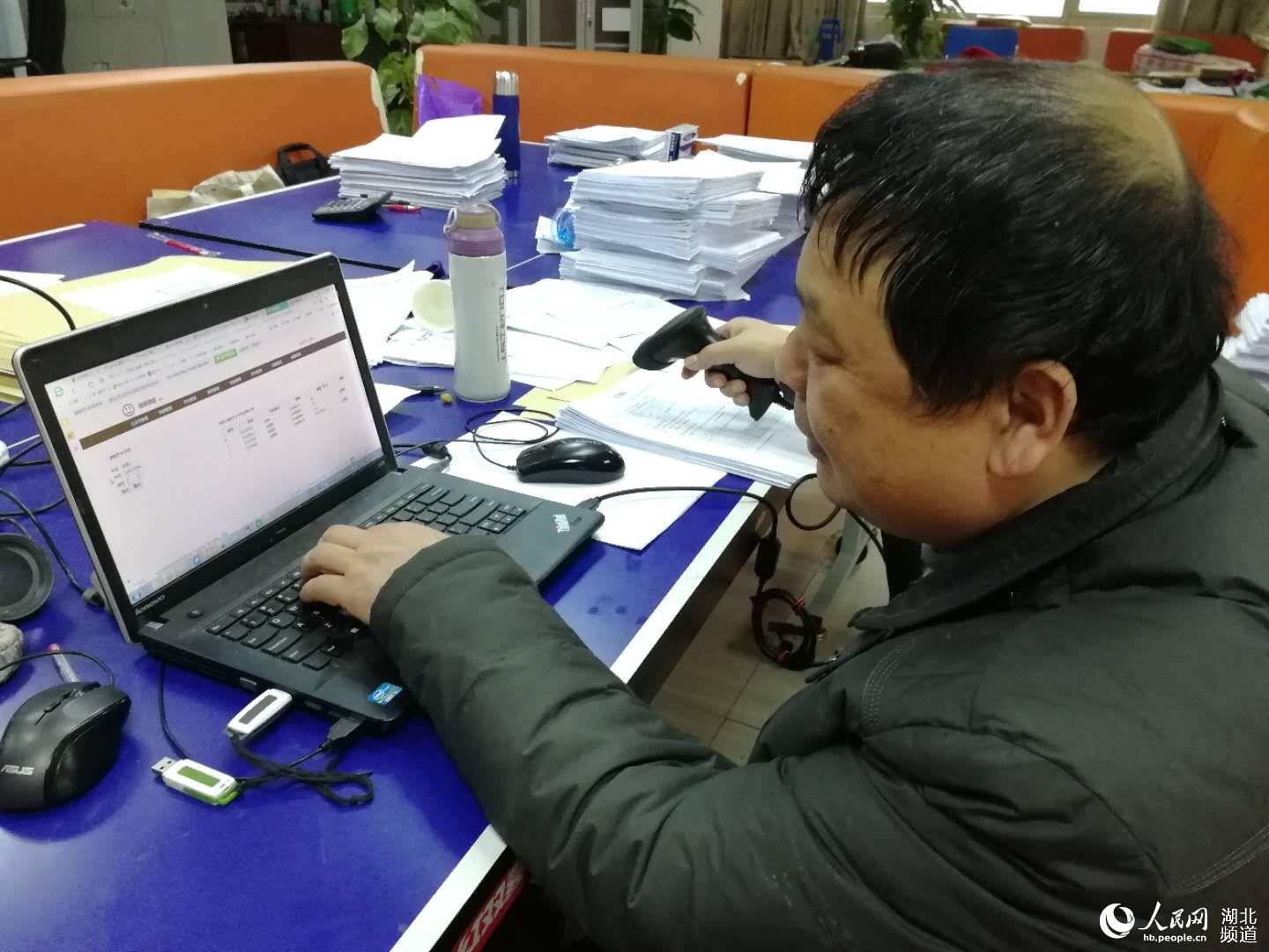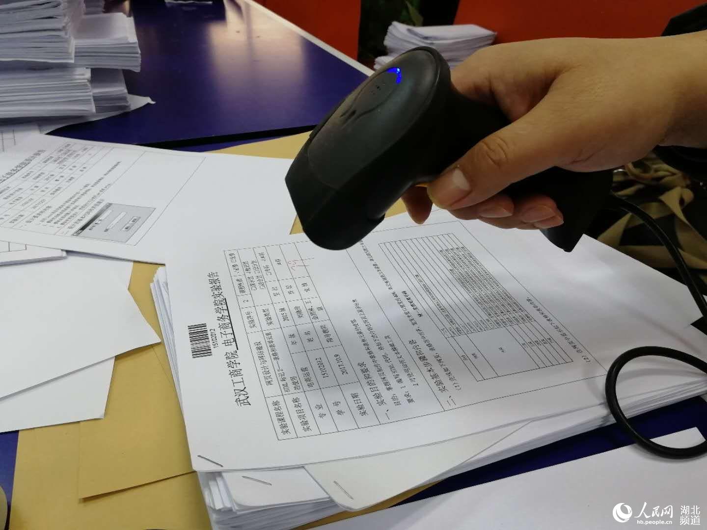 人民网武汉1月23日电 滴!扫码器扫一下试卷上的条形码,小程序上便自动显示出学生本学期每次实验的分数,再将期末成绩统计录入,省时省力又高效。1月22日,武汉工商学院电子商务学院教师金照林正手拿一支扫码器,对准厚厚一叠学生实验报告依次扫描,用自己制作的小程序统计录入学生的期末考试成绩。这新奇的一幕引来该校不少教师围观和点赞。