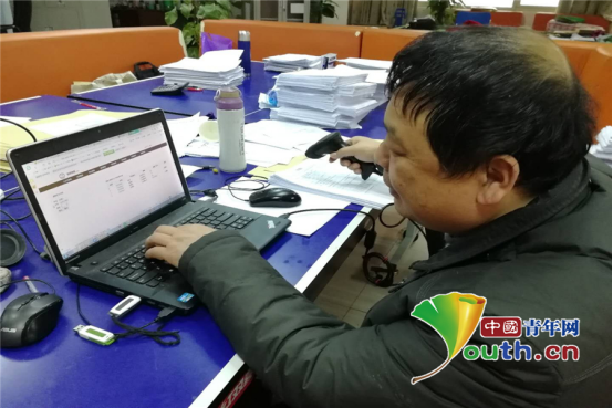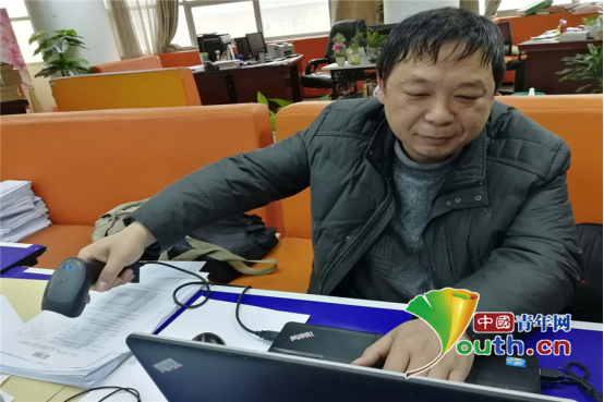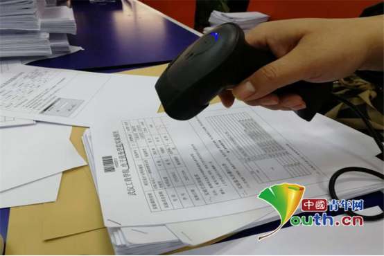 金老师在用扫码器扫描。何雨 摄