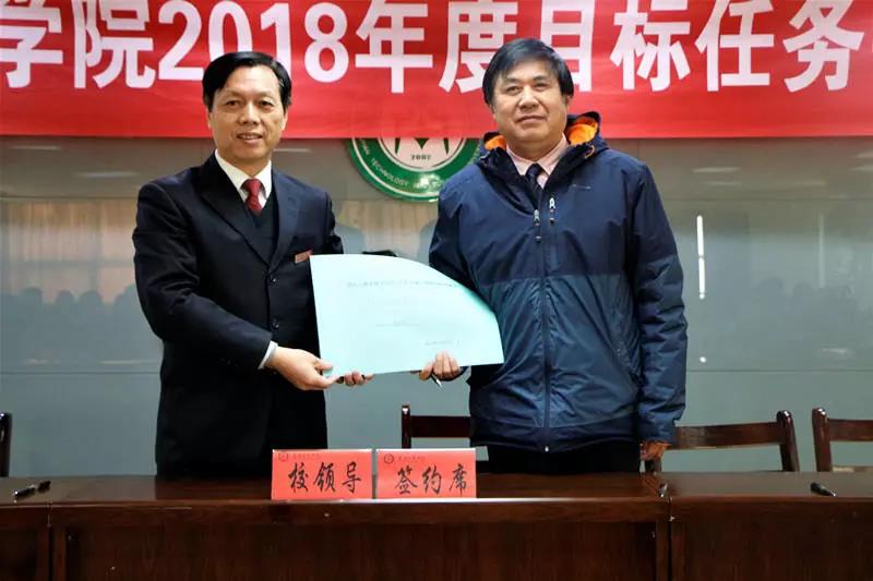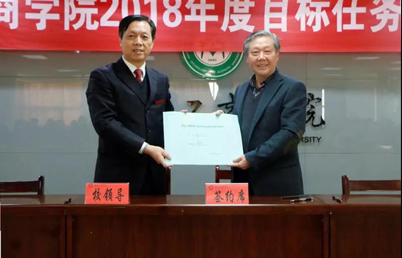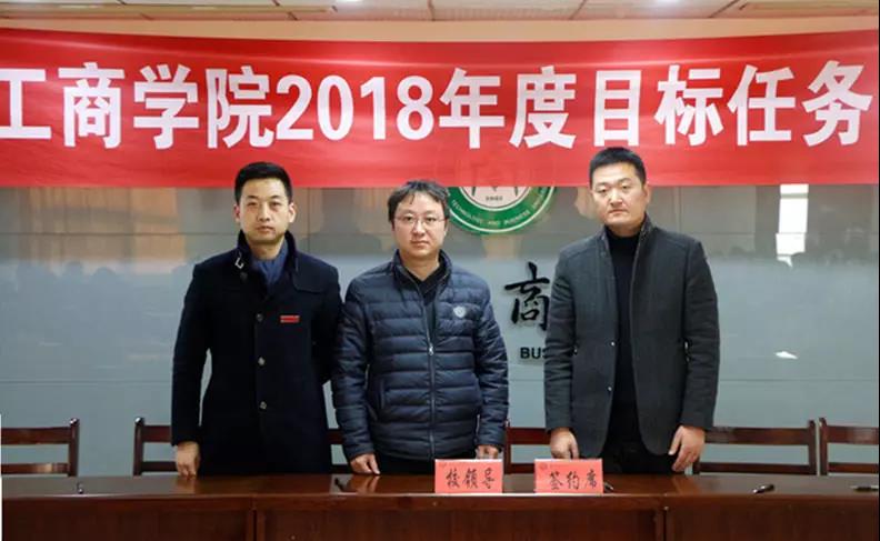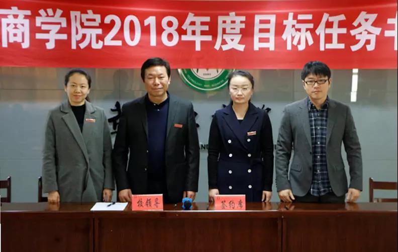 随后,经外学院、电商学院、物流学院、信息工程学院等学院以及职能部门的代表与校领导签订了2018年度目标责任书。