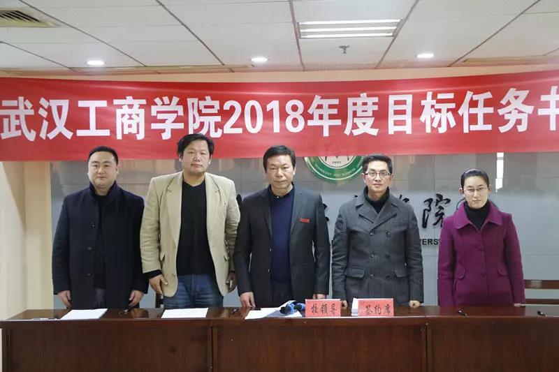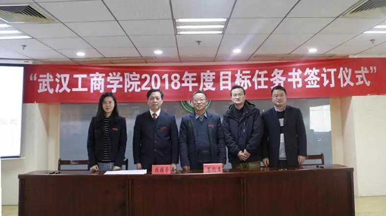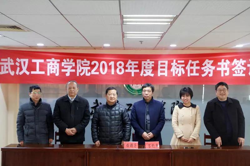 新闻中心讯(记者谢艳 摄影罗宇婧)3月8日上午9点,武汉工商学院2018年度目标任务书签订仪式在学校第三会议室举行。全体校领导,各学院(部)及各职能部门主要负责人出席了签订仪式。会议由校党委书记陈伟主持。