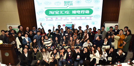 现场“绘吃活动”引发了武汉各大设计学院学生的积极反响。在启动大会上,100余设计学院的学生、向量设计学员与淘宝汇吃小二、九一创作协会的创意导师、淘宝食铺代表等进行了有趣而丰富的创意设计互动。