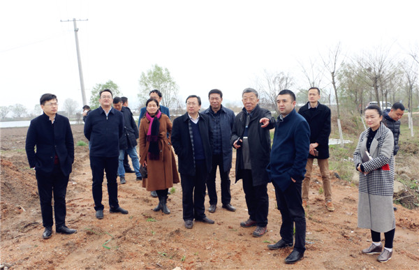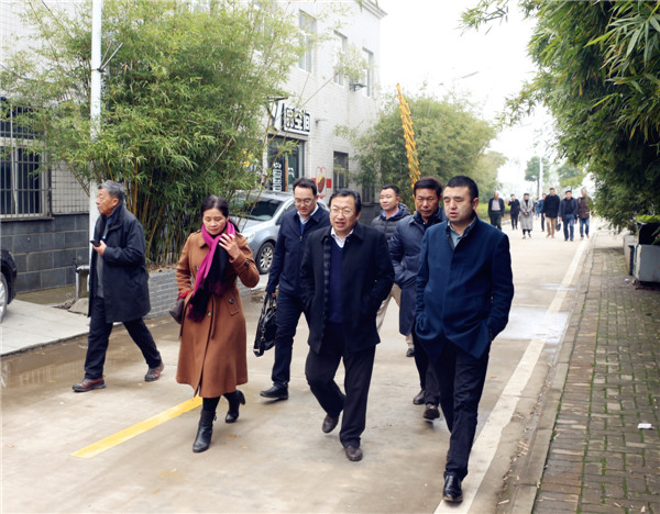 图为校领导陪同杨海松副区长一行考察 摄影:李洋洋