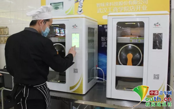 中国青年网北京3月23日电(记者 李华锡 通讯员 苌茂宇)近日,武汉工商学院一食堂新开了一家“机器人餐厅”,炒菜的整个过程由机器人直接操作完成,吸引了不少同学前来品尝这台“黑科技”所做的美味佳肴。