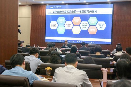 周洪宇说,今年教育领域或将流行的十大关键词,包括优先发展教育事业、深化教育机制改革、中国教育现代化2035、建设教育强国、发展素质教育、推动城乡教育一体化发展、学前教育普惠健康发展、规范校外教育培训机构、探索建设标杆大学、新时代教师队伍建设。他重点分析了发展素质教育等关键词。“素质教育,是培养学生的认知能力、合作能力、创新能力以及职业能力等关键能力,通过对学生人格的塑造与能力的提升,培育他们的核心素养。”
