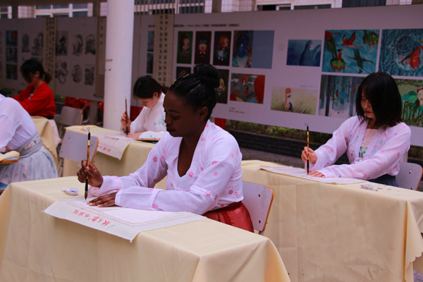 来自于津巴布韦的外教Sandrah老师以及来自韩国大真大学的交换生李河妍也参加了“科举考试”。“中国的传统文化博大精深,我非常感兴趣,平时会通过手机和网络去学习,今天实地体验了一下中国的科举文化,对中国古代科举制度有了更深的了解。”外教Sandrah老师说道。