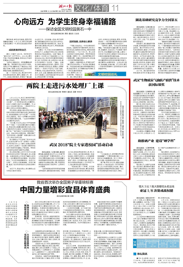 4月16日上午,武汉工商学院环境工程专业的实践课堂,搬进武汉市汤逊湖污水处理厂。87岁的李圭白院士拄着拐杖,站在几米高的大型污水处理罐前,与42名大二学生面对面交流。一起给学子们上课的,还有69岁的彭永臻院士。