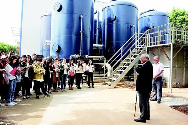 两位老院士都是中国水界学术泰斗,目前分别担任该校环境与生物工程学院院长、该校客座教授。在污水处理厂一处实验项目工程现场,他们一边带着大学生参观污水深度处理的过程,一边生动讲解着污水处理的专业知识。