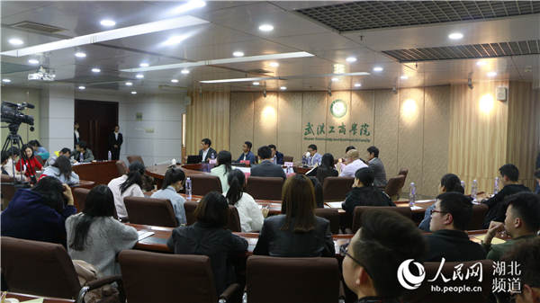 讲座现场,张安富校长代表武汉工商学院聘请彭永臻院士为学校客座教授。(蓝静李洋洋)