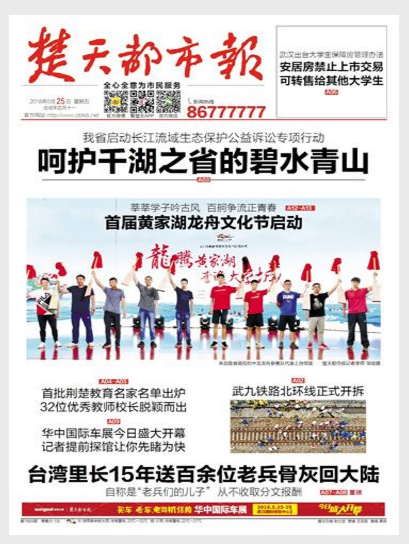 楚天都市报讯(记者 潘锡珩)划桨高举,象征着健儿们乘风破浪的方向;龙狮腾跃,彰显着大学生昂扬向上的风貌。昨日下午,一张张青春的笑脸在楚天传媒大厦璀璨绽放,来自我省高校的10支龙舟参赛队队员们,在此相约6月10日竞渡黄家湖。