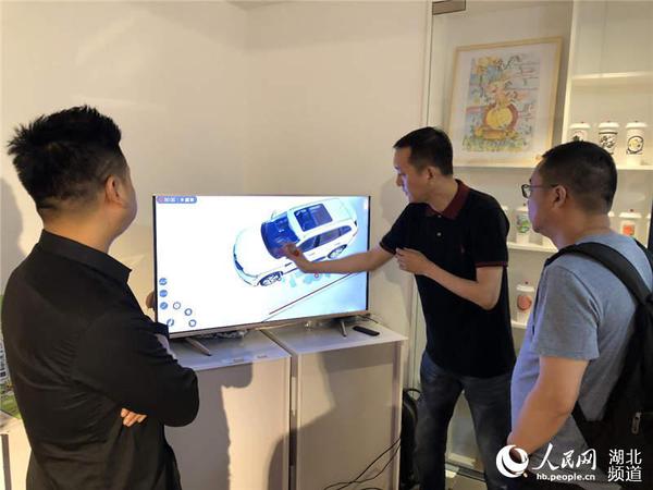 图为设计周高校设计大展武汉工商学院教师向企业推广交互设计产品