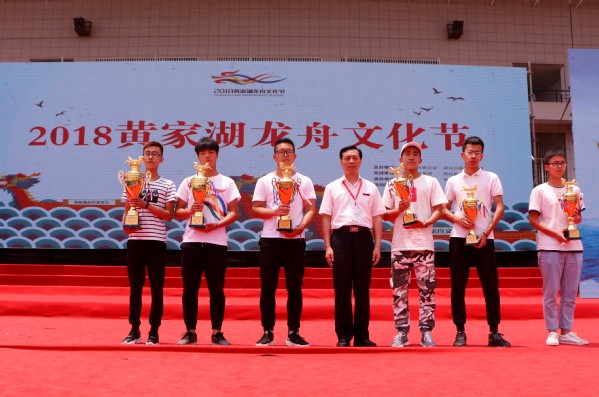 在水上龙舟竞技的同时,文化节现场还举办了旱地龙舟竞赛,学校各学院的11支队伍欢乐竞技,最终经济与商务外语学院斩获第一名,信息工程学院获得第二名,物流学院获得第三名。武汉工商学院校长张安富为获奖代表颁奖。