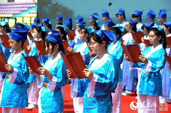 图为百名学子诵读《黄家湖赋》和《楚辞·九章·涉江》