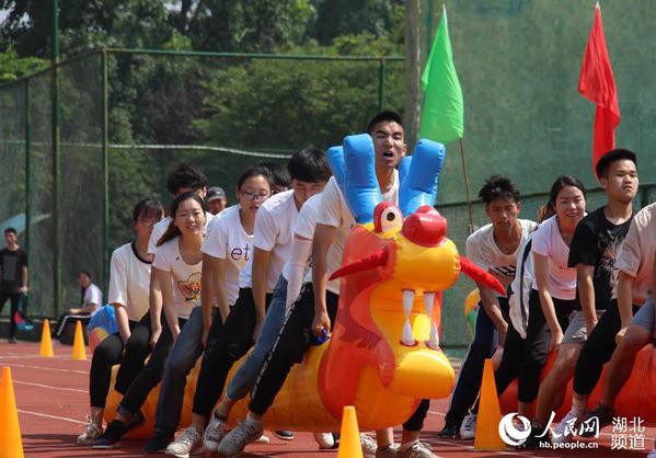 来自华中科技大学、华中科技大学同济医学院、湖北中医药大学、武汉科技大学、江汉大学、三峡大学、长江大学、湖北商贸学院、武汉商学院、武汉工商学院等10支高校龙舟队的体育健儿们,沿着200米赛道奋勇前行,拼搏进取。