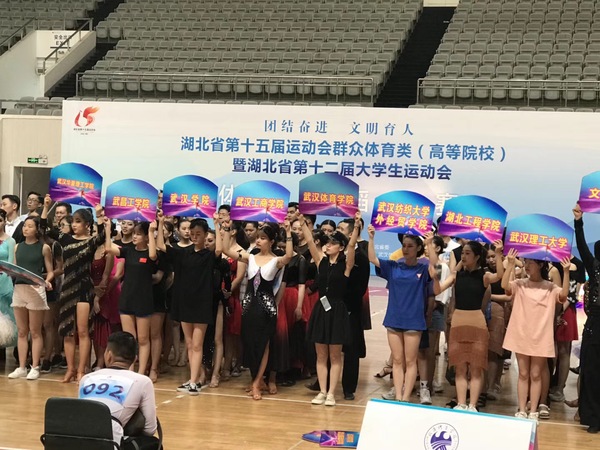 新闻中心讯(特约记者 陈索)6月8-9日,由湖北省教育厅、省体育局、团省委联合主办,华中师范大学承办的湖北省第十五届运动会暨湖北省第十二届大学生运动会在华中师范大学佑铭体育馆开赛。大赛吸引了武汉体育学院、华中师范大学、武汉工商学院等36所高校700余名运动员参赛。武汉工商学院拉丁队在指导老师李晶的带领下荣获体育舞蹈比赛女双冠军、团体舞第六名的好成绩。