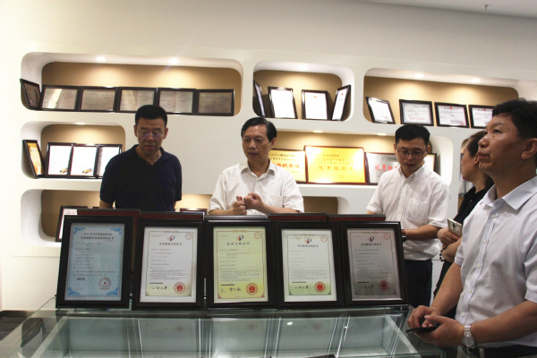 图为李树峰一行参观学校创新创业成果展示区 摄影:黄凡霁