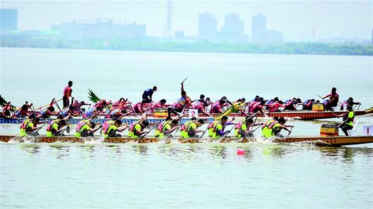 (湖北日报讯)6月10日,由湖北省体育总会、湖北日报传媒集团共同主办,武汉工商学院、楚天都市报承办的2018“龙腾黄家湖 奋进大学城”首届黄家湖龙舟文化节在武汉工商学院开幕。来自华中科技大学、湖北中医药大学、三峡大学、武汉工商学院等10支高校队伍参加了200米的龙舟竞赛,最终江汉大学、长江大学、武汉商学院分获前三名。