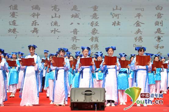 开幕式上同学们诵读楚辞。 武汉工商学院供图