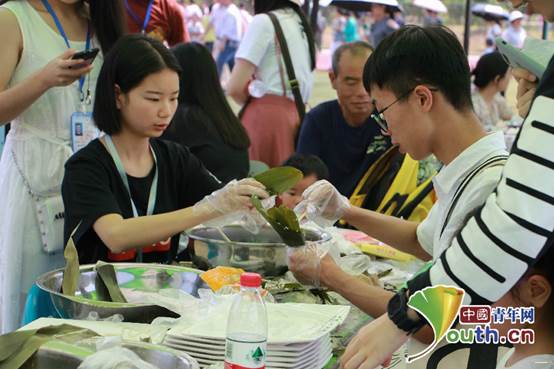 包粽子、剪纸、捏泥人、草编、做香囊……文化节现场还开展了丰富多彩的端午节文化体验和“非遗”文化互动活动,吸引了市民和大学生们积极参与。