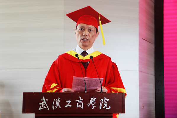 张安富校长发表了热情洋溢、饱含深情的讲话。他说,四年前,同学们怀揣梦想走进校园,成为武汉工商学院的主人。四年里,见证和经历了抗洪救灾、本科教学工作合格评估、十五周年校庆、获批全国深化创新创业改革示范高校、获评湖北省“文明校园”等重大事件,和学校共同成长和进步。