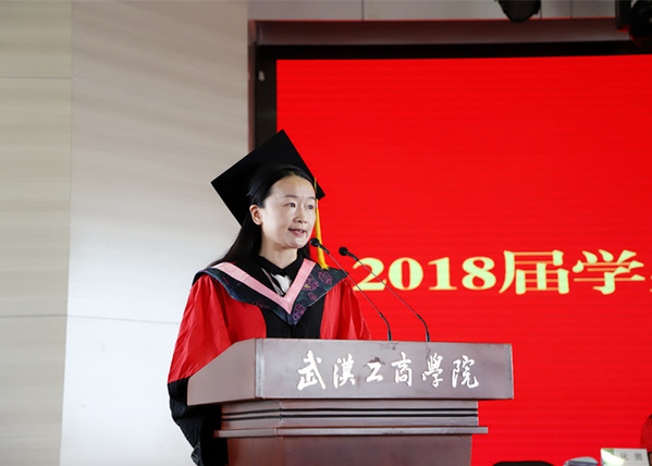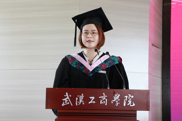 电子商务学院学生曲光浩代表全体在校生发言。他向即将毕业,在新的人生舞台上挥洒青春的学长学姐们表达了诚挚的祝福。他说,在大学三年里,很多即将离开的学长学姐们都给予了自己很大的帮助,优秀学姐学长的事迹也不断激励着自己进步与成长。“我会接过你们手中的接力棒,延续工商人的情怀,传承工商人的精神,共同成为武汉工商学院建百年名校历史征程中的亲历者、见证者、建设者。”