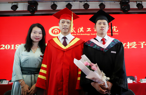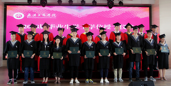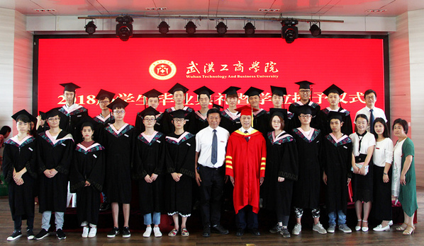 新闻中心讯(记者 蓝静 李洋洋 摄影 王尧 代悦涵 郭冰雪 向慧)6月15日上午9:00,武汉工商学院2018届学生毕业典礼暨学士学位授予仪式在该校学术报告厅隆重举行。武汉工商学院校长、学位评定委员会主席张安富教授;副校长、学位评定委员会副主席夏再兴教授;学位评定委员会委员童光荣教授、张培林教授、孙宝林教授、王学东教授、杨昌柱教授、郭一平教授、刘春教授、王海文副教授和吴敏副教授,学校党委书记陈伟,副校长桂裕清、张俊等领导,以及教师代表、毕业生代表、毕业生家长代表、在校生代表参加了典礼。典礼由学校办公室主任狄奥主持。