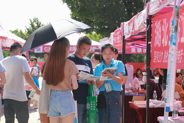 新闻中心讯(记者 李洋洋 周帆)6月25日,由湖北省教育学会指导,湖北育路通教育咨询有限公司组织,武汉工商学院等单位协办的第17届全国高校湖北招生咨询会暨武汉工商学院校园开放日在武汉工商学院举行,中国传媒大学、华中农业大学等全国近百所高校在此设立招生咨询点,接受广大考生及家长的咨询,2000多名考生和家长顶烈日冒高温,从各地赶来参加招生咨询会。