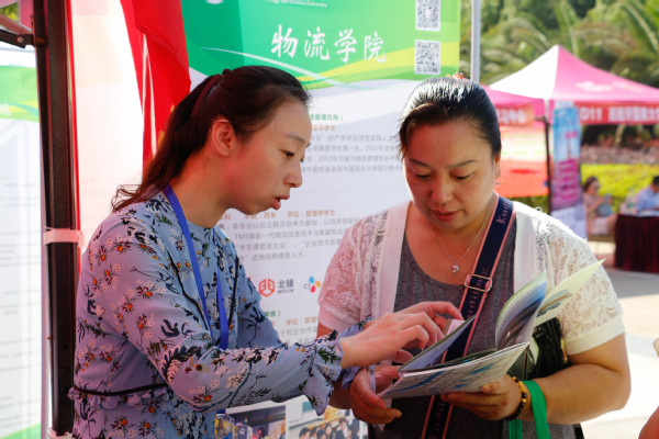 图为物流学院林倩老师正在向考生家长解答疑问 摄影:刘磊杰
