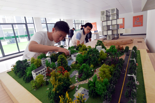 图为学校艺术与设计学院老师正在向学生介绍“字绘中国”创业项目