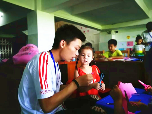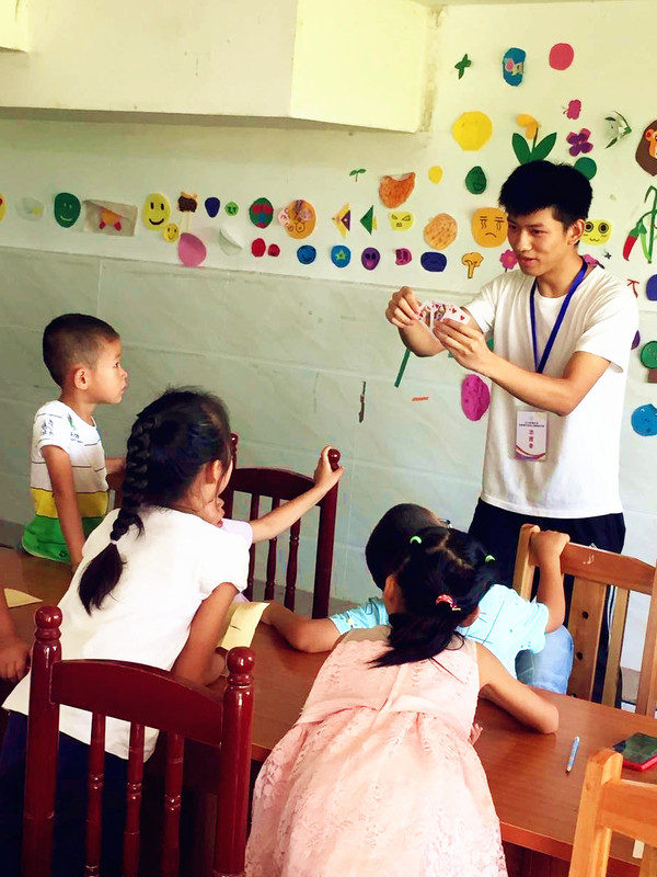 此次支教活动主要以陪伴留守儿童,拓展他们的课外知识为主,志愿者们为孩子们带去了绘画、手工、魔术、棋类、英语等课程,充分开发孩子们的思维能力,锻炼他们的动手能力。在这里,最小的留守儿童只有5岁,最大的13岁,由于孩子们的整体年龄偏小,志愿者们授课都会采取游戏教学的方式,调动大家的积极性。在英语课上,每个孩子都大声地跟着志愿者朗读英语单词,积极回答问题;在手工课上,每个孩子都聚精会神地学习制作方法,并一个个争先恐后地拿着自己的作品上台展示……慢慢地,孩子们变得自信起来,不再胆怯。