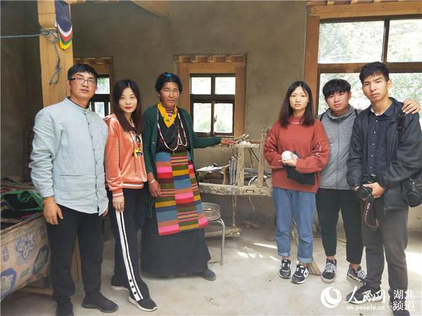 说完,达琼母亲还高兴地向志愿者们展示了氆氇编织技艺,原始的织机咿呀作响,梭子在她手上来回穿梭,仿佛时间又回到了悠久的过去。