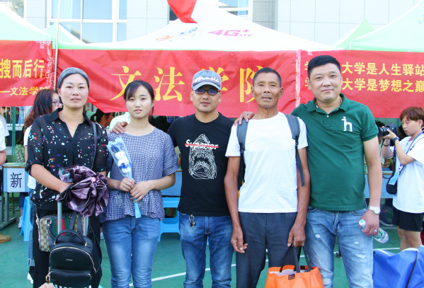 图为大一新生与家长开心合影 摄影:车瑭甜