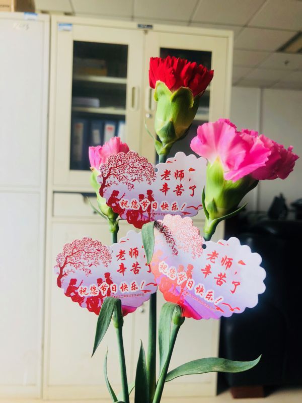 新闻中心讯(记者 万风)“老师们,节日快乐!”9月10日是教师节,一大早,武汉工商学院校学生会的学生代表们,来到各个单位的办公室,向教职工们致以节日的问候,并送上康乃馨表示感谢,全校洋溢着浓郁温暖的节日氛围。