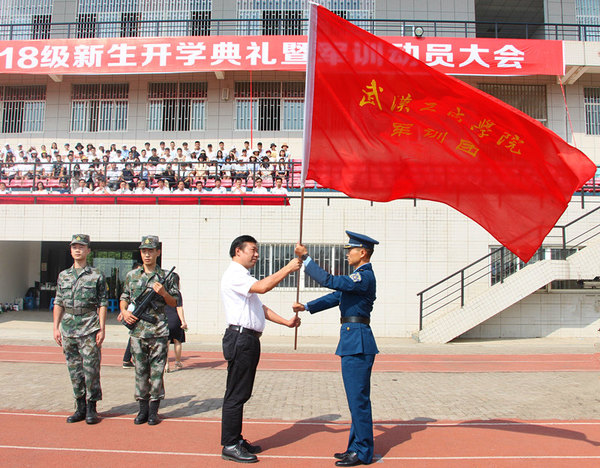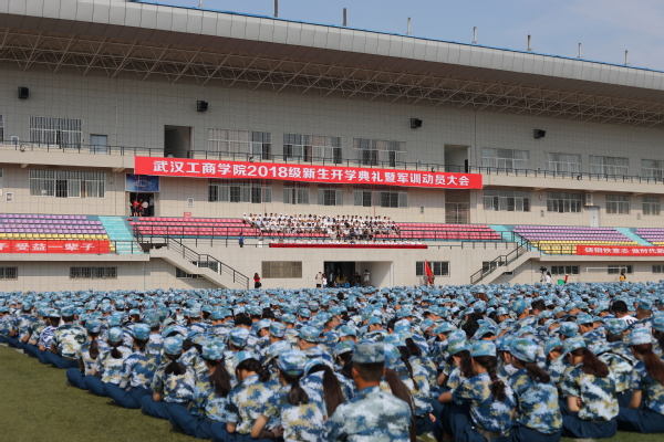 新闻中心讯(记者 孙欢欢 李洋洋)9月11日上午9:00,武汉工商学院2018级新生开学典礼暨军训动员大会在田径场隆重举行,空军预备役相关领导,学校董事长彭秀春,校长张安富,党委书记陈伟,副校长桂裕清、夏再兴、张俊,以及各二级学院院长、党总支书记、教师代表、2018级新生辅导员,相关职能部门负责人,在校生代表和2018级全体新生参加了典礼。大会由学校办公室主任狄奥主持。