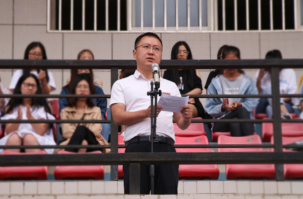 副校长张俊作军训总结讲话。他首先代表学校向辛劳在军训一线的全体承训教官表示衷心的感谢和崇高的敬意,向参训的全体同学、辅导员老师和负责后勤保障的同志们表示亲切的慰问,向在军训中取得优异成绩的同学们表示热烈的祝贺。他欣慰地说:“在15天的军训中,留下了诸多感动难忘且美好的回忆。全体教官严格训练,科学管理,使同学们以饱满的热情投入到军事训练中;在训练场上,参训同学们发扬‘流血流汗不流泪,掉皮掉肉不掉队’的精神,在炎炎烈日下刻苦练习;辅导员老师们也每天坚持到训练现场,了解训练情况,协助解决各种实际问题。”他希望同学们在今后的学习中,不断超越自我、砺练自我,巩固军训成果,把从军训教官身上学到好思想、好作风、好传统继续发扬光大,促进学风和校风的不断优化;认真学习科学文化知识,掌握过硬的专业技术技能,使自己成为素质高、“三力”强、个性飞扬的应用型人才。