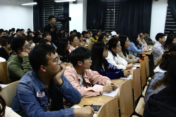 图为学生们正在认真听讲座 摄影:郭冰雪