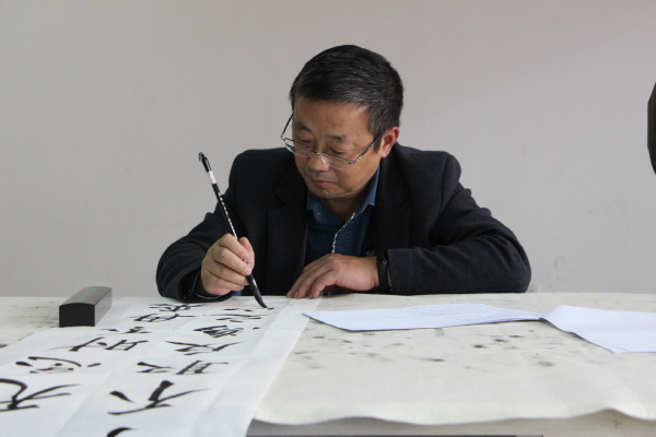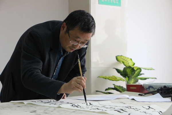 “书法是中国的国粹,对于广大师生而言,它不仅可以作为兴趣爱好来学习、交流,更可以作为内心情绪的一种表达。修身养性的同时也弘扬了我国优秀的传统文化。”万化喜在交流会上与同学们交流道。