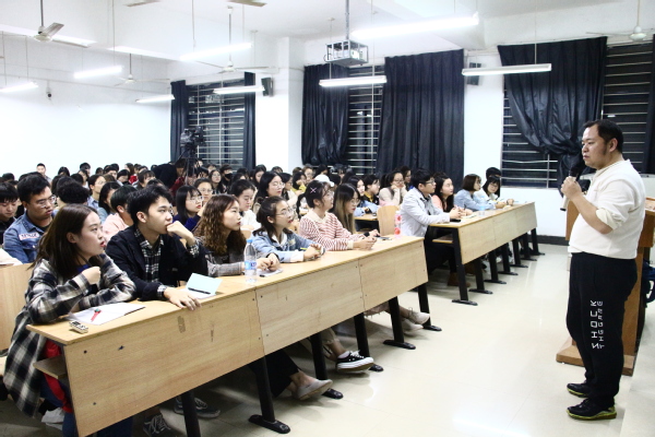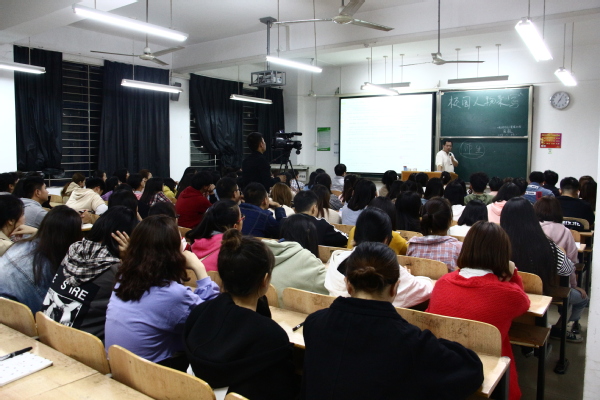 “何为校园人物?”讲座一开始,乐毅老师就向在座的学生提问。“优秀的老师和学生”“有正面影响力的校内人物”……面对学生们不同的回答,乐毅老师没有给予正面回答,而是卖起了关子,向大家列举了华农十大校园人物“华农澡堂叔”的例子。