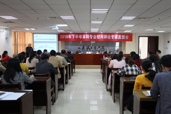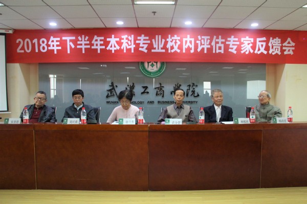 新闻中心讯(记者 陈洁 见习记者 顾晴阳 杜淑霞)为进一步加强专业建设,提高本科专业教学质量,10月18日下午2:30,武汉工商学院2018年下半年本科专业校内评估专家反馈会在第三会议室召开。华中科技大学武金渭教授、宋善德教授、徐兰芳教授,中南民族大学杨清震教授,武汉理工大学林根祥教授,武汉科技大学刘兴重教授组成的评估专家组,以及武汉工商学院校长陈奎生,校党委书记陈伟,副校长夏再兴,学校监评中心主任郭一平,接受评估的6个专业所在学院的院长、副院长、系主任、专职教师等参会。