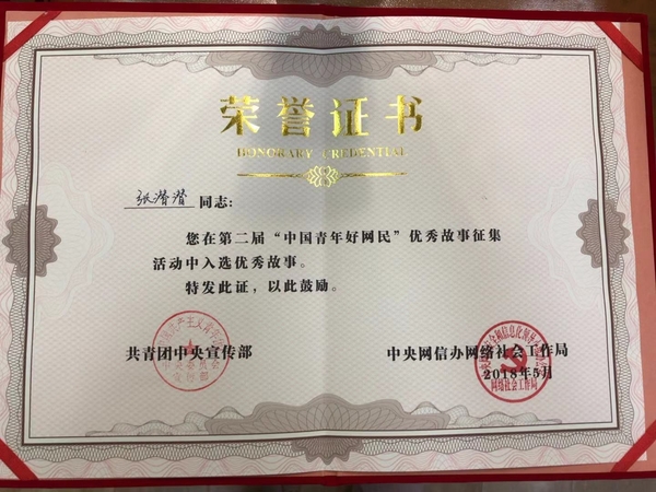 11月中下旬,共青团中央、中央网信办将在全国开展“不忘初心跟党走 青春建功新时代”中国青年好网民优秀故事百场分享活动,张潜老师将受邀前往分享。届时,中国青年报、中国青年网以及各地报纸、电视台、广播电台等主要媒体将通过网络直播进行宣传报道。